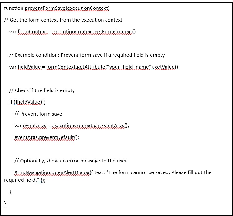 How to Prevent a Form from Being Saved in Dynamics 365 Using JavaScript