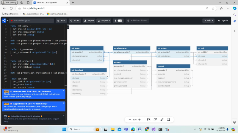 2. Your ERD will now be available in dbdiagram.io, where you can further edit, share, and export it.